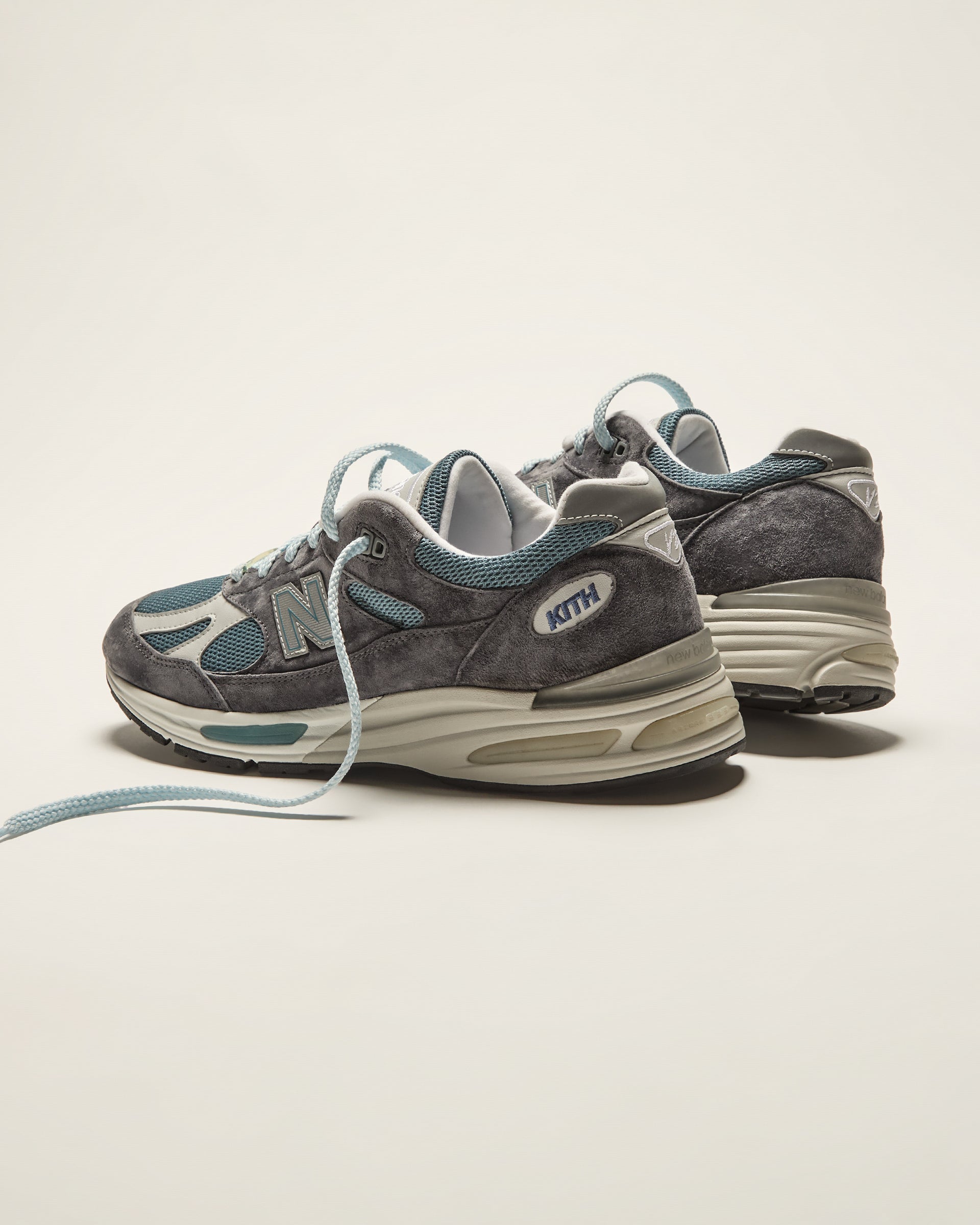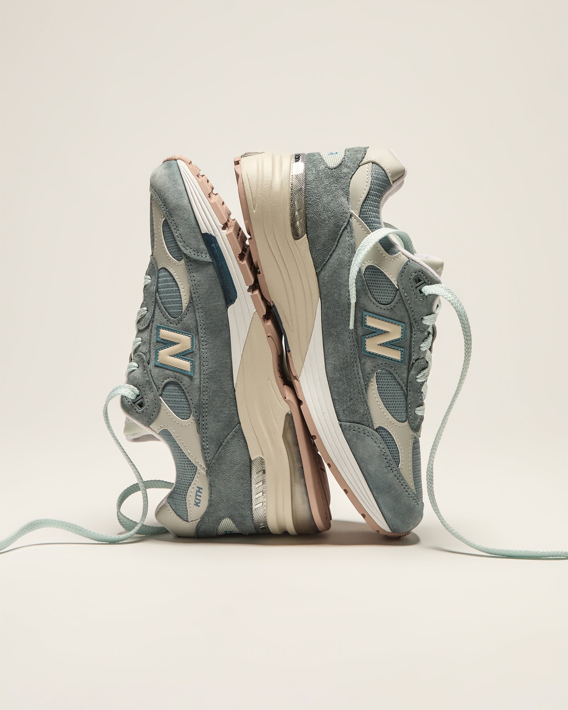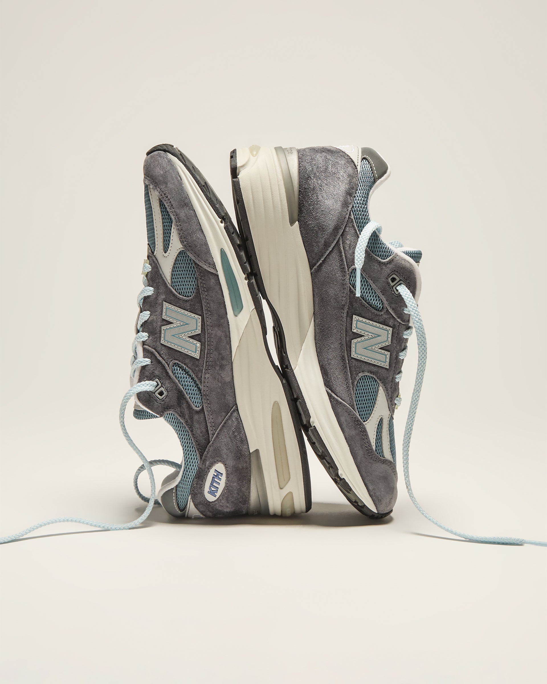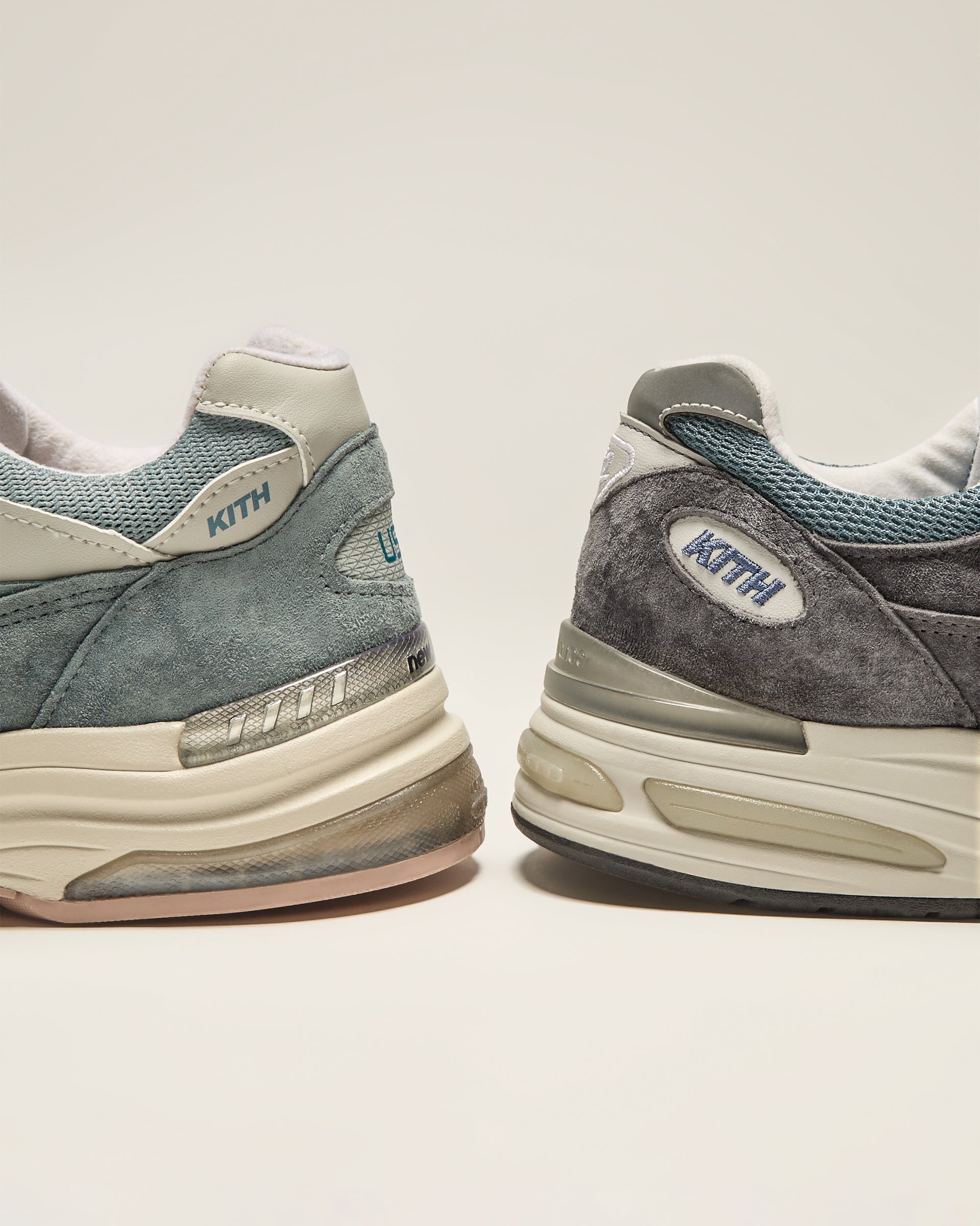 Each color-blocked style features a mesh upper with premium suede and leather overlays. Classic Kith branding is seen on the heel counter and custom Kith for New Balance co-branding on the sockliner. These styles are both executed in a variety of exclusive blue, white and grey hues.