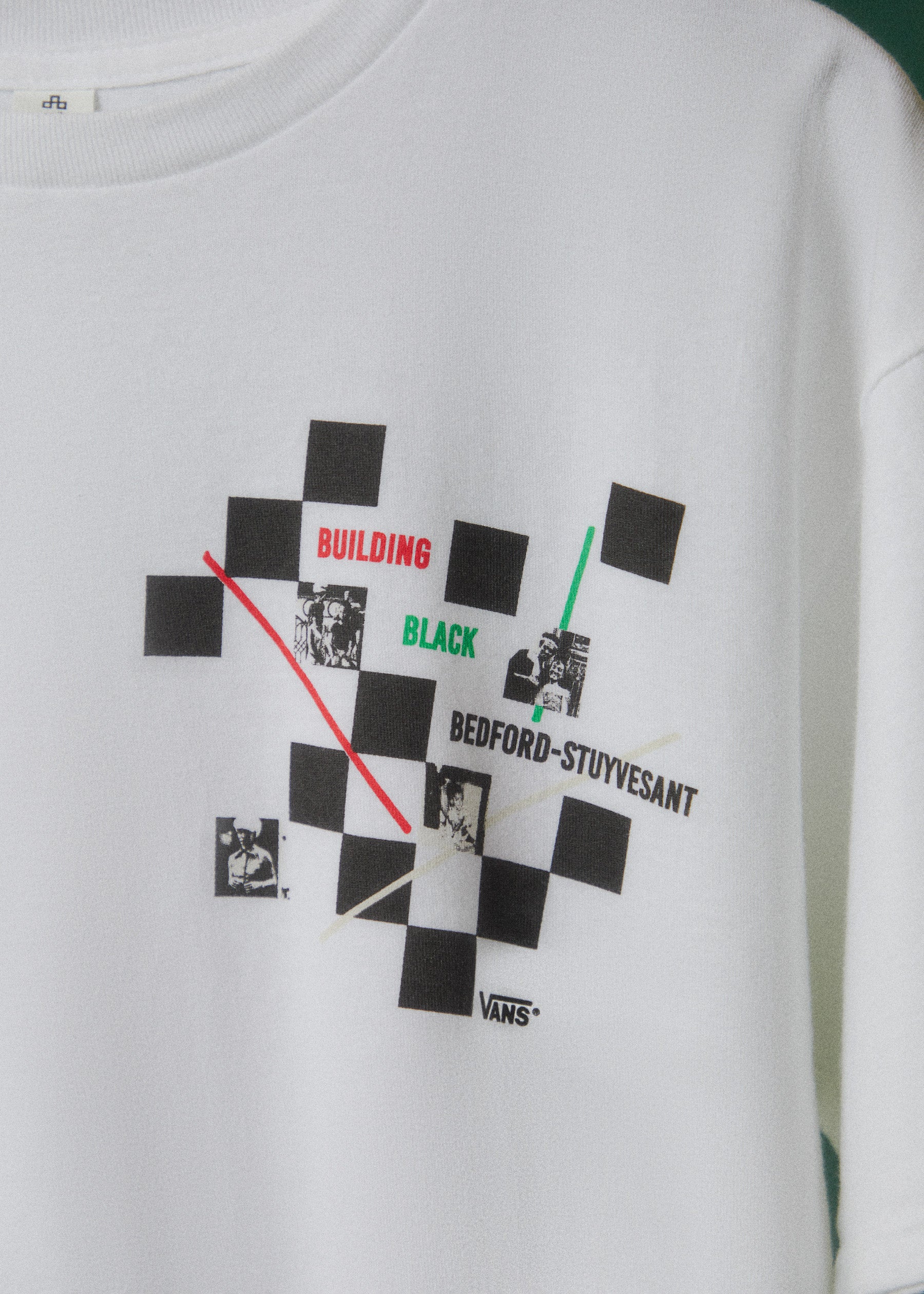 Shani: For the tee, embedded within the prints are photos of old Bed-Stuy, featuring people who lived and grew up there—particularly images of many of Kai's family members. We felt that using actual residents' photos created a stronger connection than illustrations, as these images capture memories of this beloved neighborhood over time.