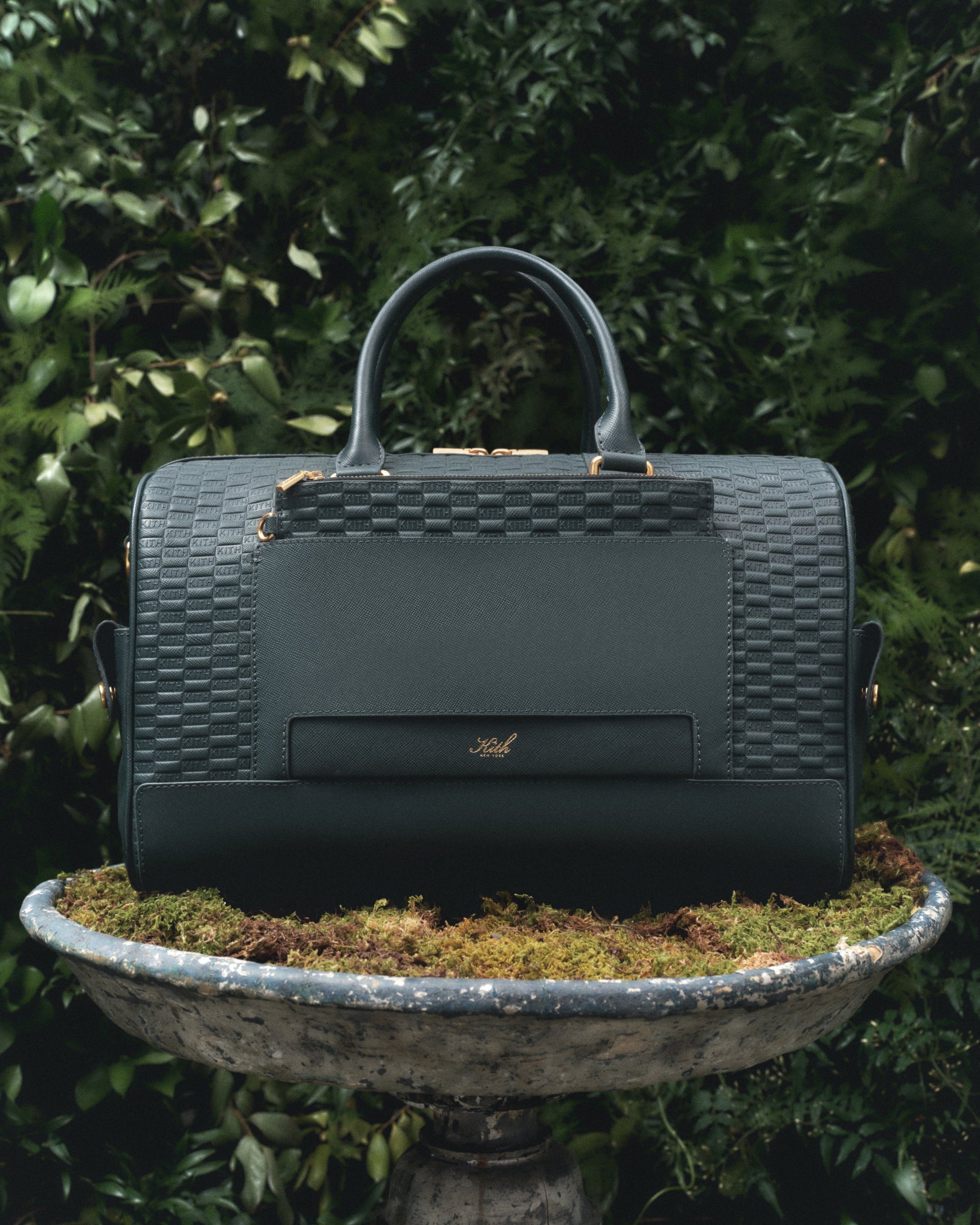 Seasonal accessories alongside the return of Kith Monogrammed Leather Goods, featuring new silhouettes such as the Messenger Briefcase and Explorer Pack, accompanied by coordinating Tech Cases. The assortment expands with the Travel K40 Duffle Bag and Bucket Hats, crafted in our new brushed wool-blend denim, made to match the main collection. The offering is complete with signature headwear, created with New Era and ‘47, alongside premium socks, silk bandanas, sunglasses, and Vachetta Leather Belts.