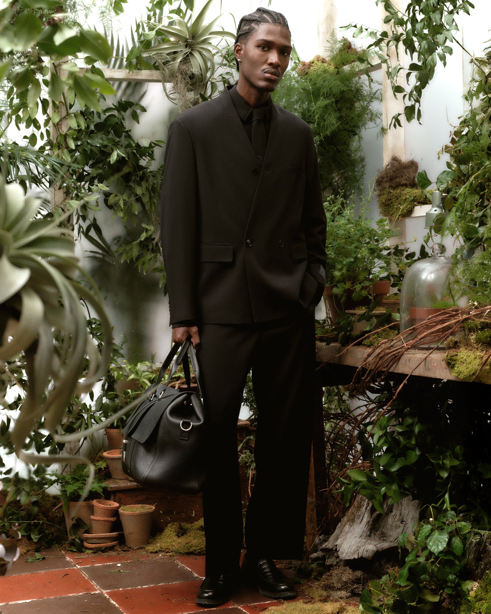 &Kin returns with Giorgio Armani as its official suiting partner, presenting a new assortment of silhouettes drawn from the Giorgio Armani Archives. The collection features collarless jackets, the Entrepreneur Shirt, and the Asymmetrical Zip Front Shirt, all rendered in an elevated Milano crepe weave and paired with coordinating pleated trousers. Discover our new material compositions, including brushed wool-blend denim, high-performance technical blends, and textured leather, applied across outerwear, tailored trousers, and corresponding accessories.